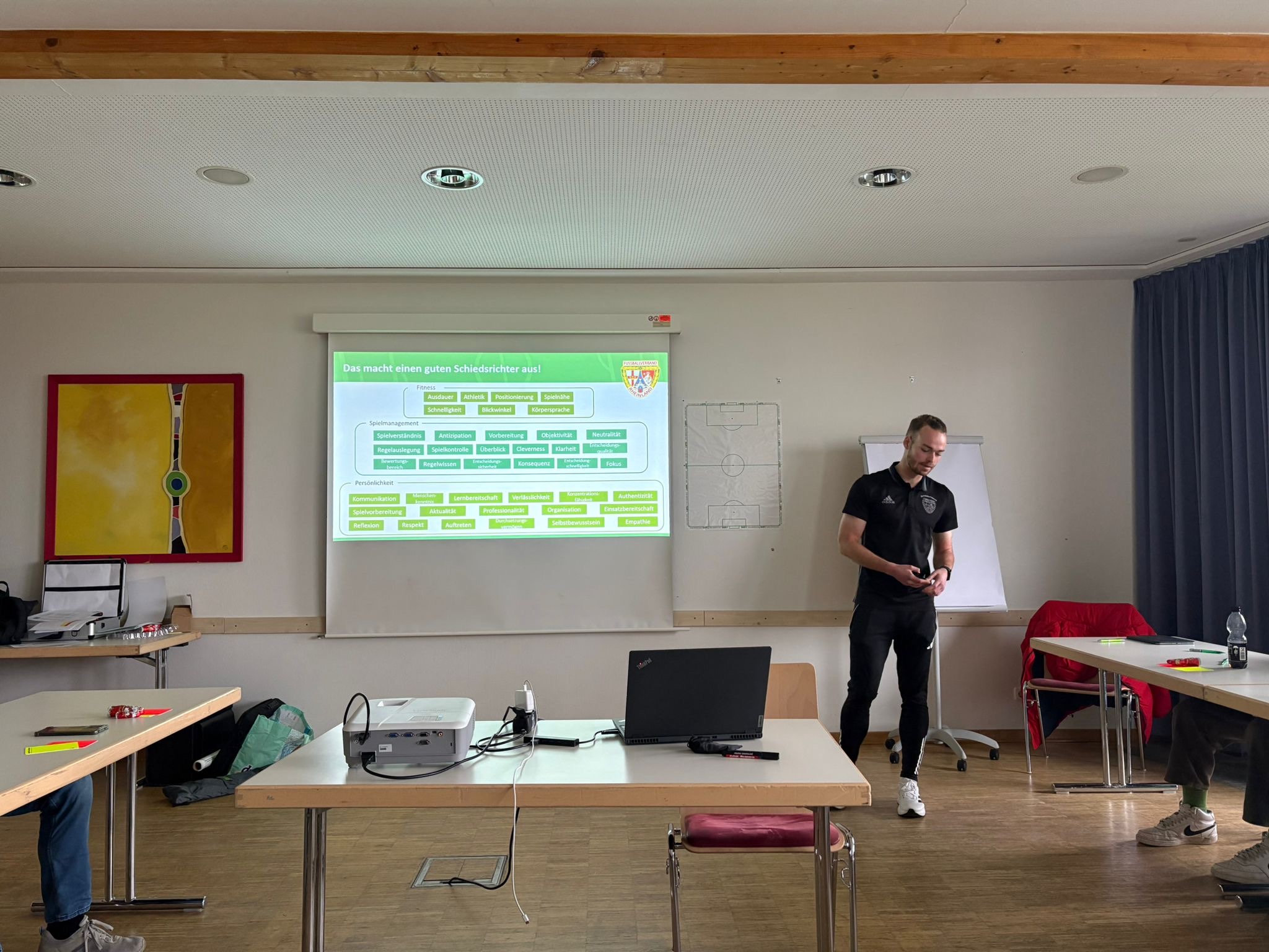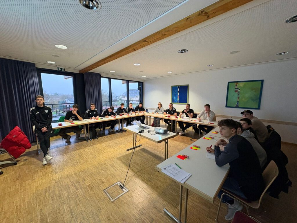 Nach einer Stärkung folgten noch die Themenbereiche DOGSO (Notbremse) & SPA (Taktisches Foulspiel), das moderne Stellungsspiel sowie die Kommunikation auf und neben dem Platz bevor der Lehrgang seinen Abschluss fand. Wir bedanken uns im Namen der Eifelschiris natürlich für die Nutzung der Räumlichkeiten.